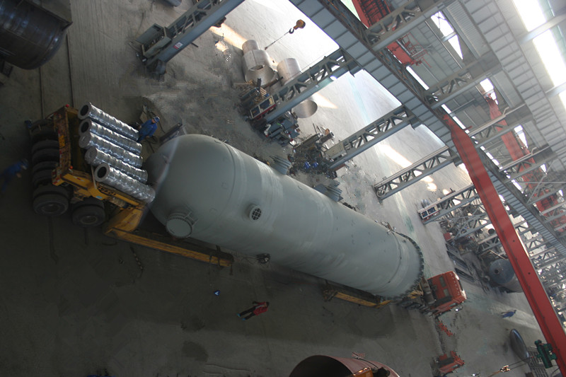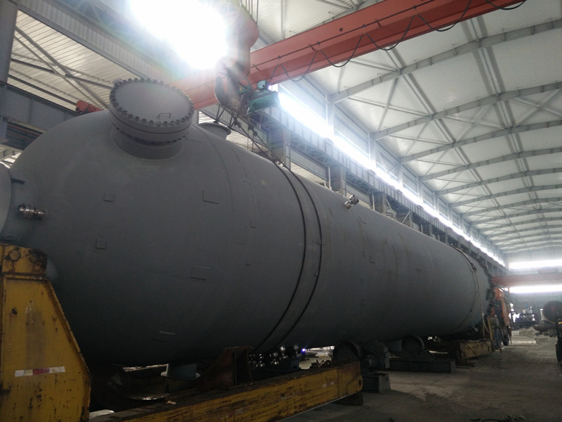 直徑4000mm,壁厚58mm,長約20000mm,S30408+Q345R復合板,重達170噸大型氣液分離器